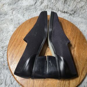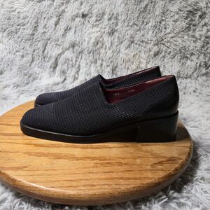 Donald J Pliner Women Size 9.5N Black Slip On Loafers Block Heel Red Inside Shoe