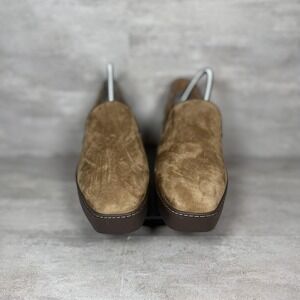 Donald J Pliner Womens 10 Tan Suede Platform Wedge Slip On Loafers Square Toe