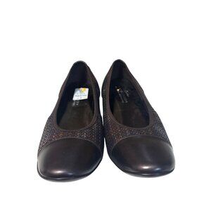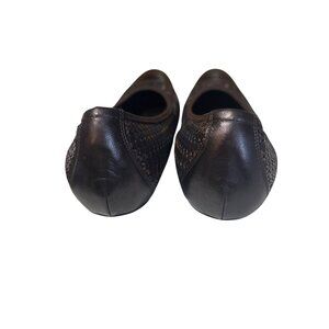These Donald J Pliner ballet flats combine elegance with comfort. Crafted in Italy, they feature a leather and sequined design, making them an ideal choice for an understated yet stylish look. The rich brown color ensures versatility for various outfits.