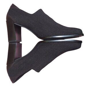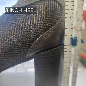Donald J Pliner Womens 8.5M Brown Herringbone 3 Inch Heeled Loafers~Dark Brown