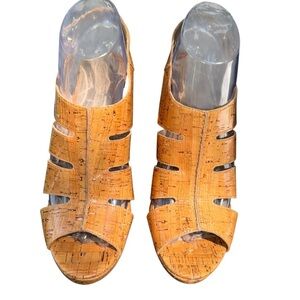 Donald J Pliner Women’s Cork Wedge Sandals Size 7.5 Tan Cork Buckle Strap