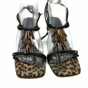 Donald J Pliner Womens Strappy Sandals Brown Black Leopard Print Lace Up 7.5 M