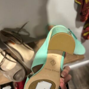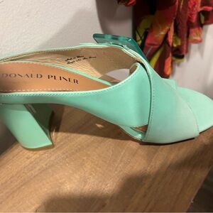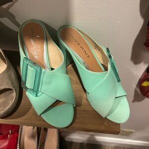 Elegant mint green mules with a stylish buckle. Perfect for adding a pop of color.