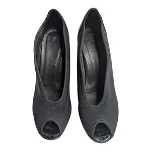 Donald J Pliner Zetta Peep Toe Heels Black Croc Leather Italy Platform Pump, Size 6