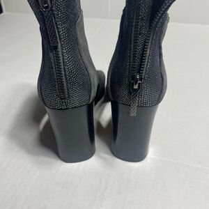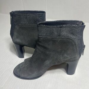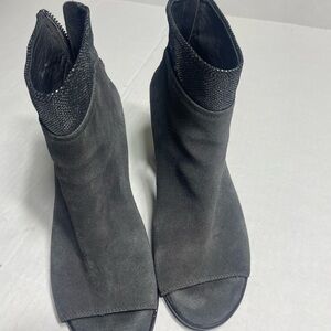 Elegant charcoal suede with textured black accents. Perfect for versatile styling. Has a little wear on the heel please see photos