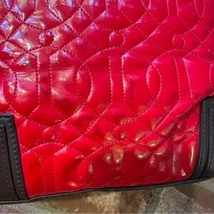 Donald J Pliner red & brown leather hobo bag in good used condition. Please see photos for minor flaws. There is discoloration in spots as pictured as well. Short brown leather shoulder strap. One zippered pockets, two open pockets and one leather open pocket inside. Zipper closure on top. See photos for measurements.