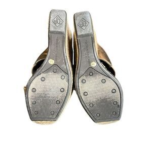 Still in fantastic condition! Rope wedge has a metallic threading. Features a 5" heel with 1.75" platform and elastic across the top. Be sure to check out all of my other Donald Pliner shoes listed.