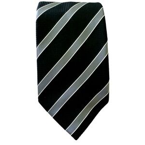 Donald J Trump Signature Collection Black and Gray Striped 100% Silk Tie