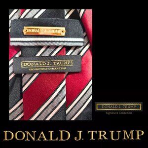 Donald J. Trump Signature Collection Necktie w/ Tie Box Black & Red Striped NEW