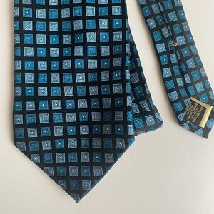 Donald J Trump Signature Collection Silk Tie Blue Geometric Gold Bar 60”x3.5”