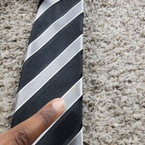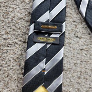 Donald J Trump Signature Collection Silk Tie Mens Black Gray Striped Mark*