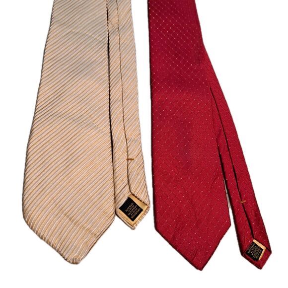 * Yellow tie has a 2-3 inch mended area on back, shown in photo. Red tie has a light discoloration on front that I couldn't show on camera that can only be seen at a certain angle. ***Please keep in mind this is a pre-owned, used item and is not in perfect condition! There may be minor flaws or wear. Any and all visibly seen issues upon two inspections prior to listing have been mentioned.***