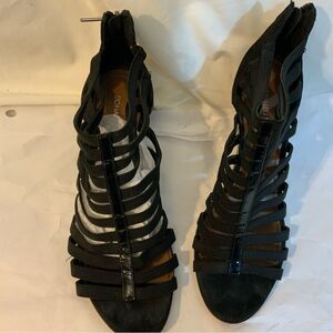 Donald J Pliner Pelle Elastic Strappy Wedge Sandals - Black size 9.5 M