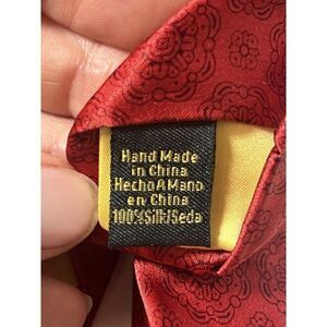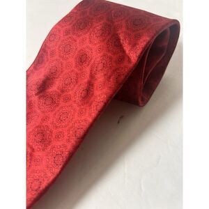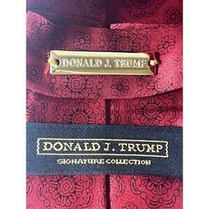 The product is a classic red geometric silk tie from the Donald J Trump Signature Collection. This traditional neck tie is made of woven silk fabric with a classic length of 56-60 inches. Ideal for men looking to add a touch of luxury and style to their formal attire, this tie is perfect for a variety of occasions and settings. Made in China, this tie showcases a bold red color and geometric pattern, making it a standout accessory for any outfit.