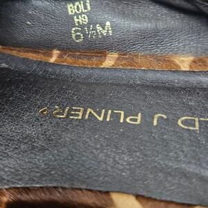 There is some rub wear on one of the heels Donald Pliner 6.5 Boli Leopard Calf Hair Ballet Flat Casual Career Elastic