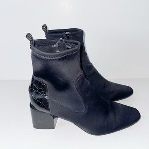 Donald Pliner ABBIE WOMENS SUEDE SQUARE TOE ANKLE BOOTS BLACK Sz 9 Y2K