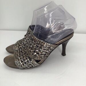 Nice Donald Pliner Alita leather woven metallic slip-on mule heel.