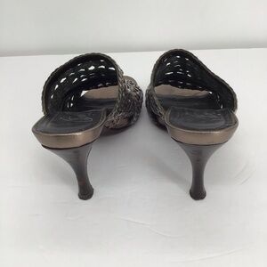 Donald Pliner Alita Leather Metallic Gunmetal Woven Slip-On Mule Heel Size 7.5 N