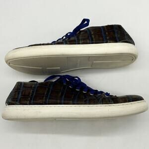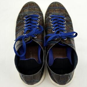 Donald Pliner Alligator Print Shoes Mens 11 Pierce Brown Leather Blue Lace Up