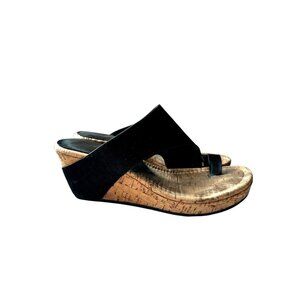 Donald Pliner Black Gyer Leather Wedge Toe-Ring Sandals 7