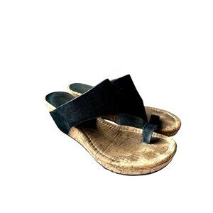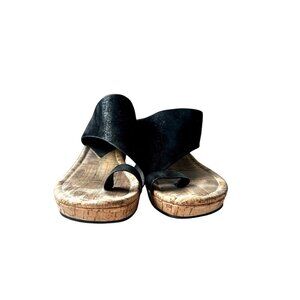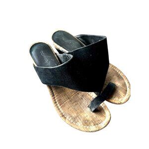 Donald Pliner Black Gyer Leather Wedge Toe-Ring Sandals 7