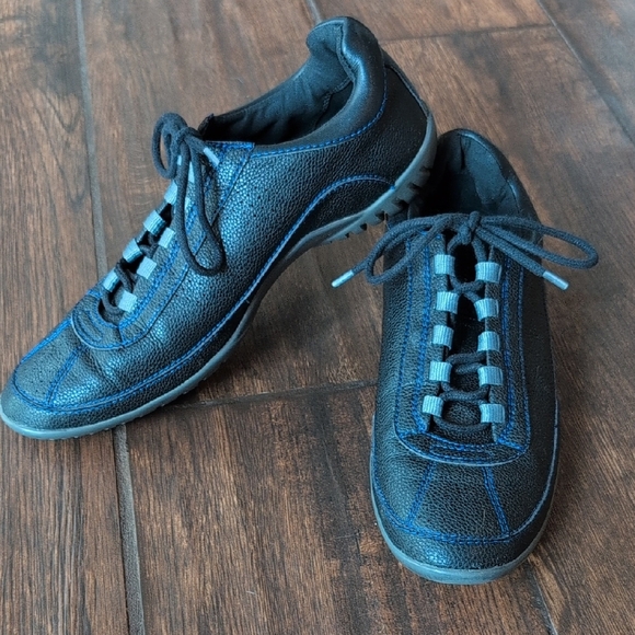 Donald Pliner Black Leather with Blue Stitching Casual Sneakers - Men's 9