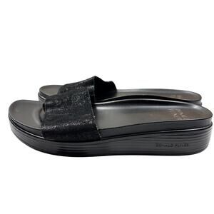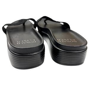 Donald Pliner Black Leather Slide Sandals Platform Wedge Size 9M