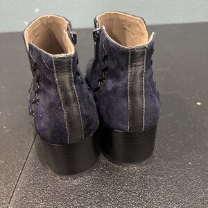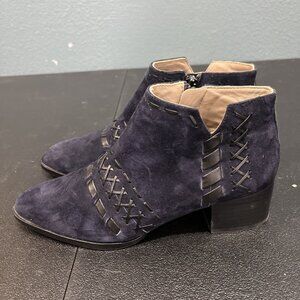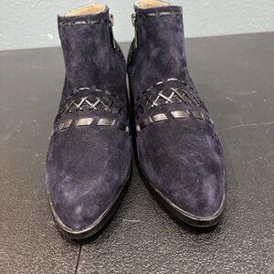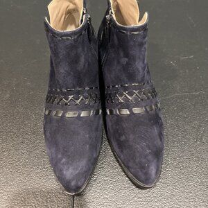 Donald Pliner Boots Womens Sz 5 Navy Suede Bowery Cross Whip Stitch Boho Western