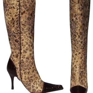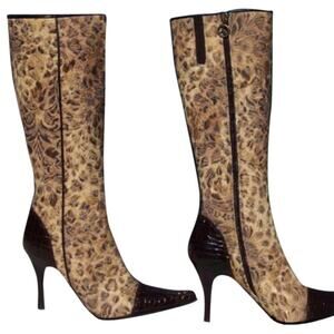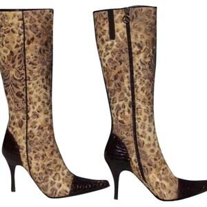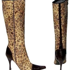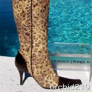Donald Pliner Bronze Black Brown Gator Leather Leopard Tapestry Boot $495 NWT