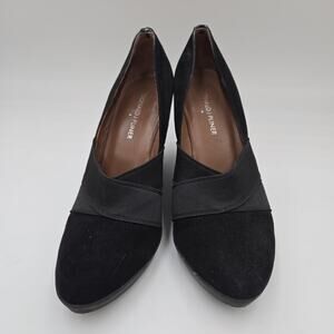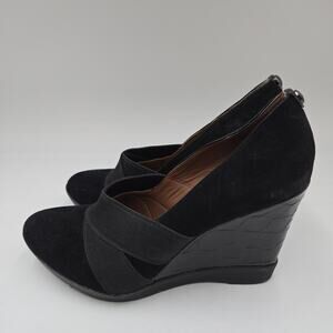 Donald Pliner CARLA Black Suede and Patent Leather Wedge Heel Pumps Size 8 M