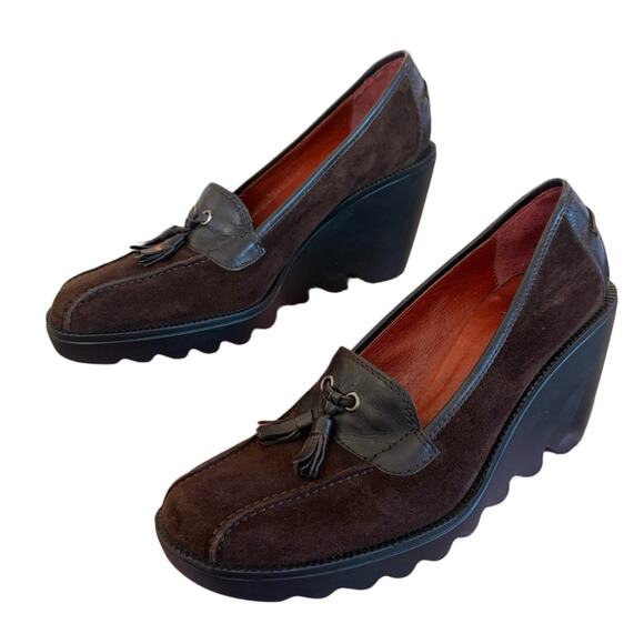 Baco Suede Wedge Loafers, Brown Italian Academia Preppy 9M