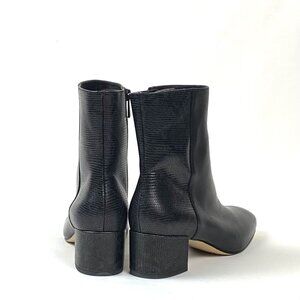 Donald Pliner Cindee Soft Leather Upper, Textured Python Print On Back Quarter Panel and Block Heel, Round Toe, Ankle Boot. Black. Sizes 7.5 & 8
