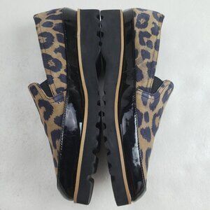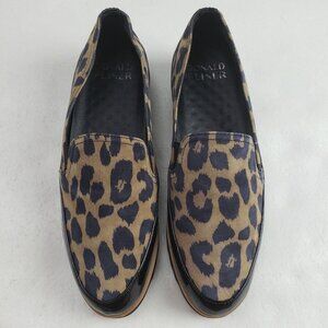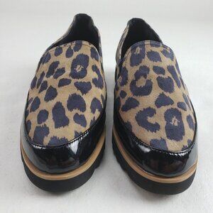 Donald Pliner Conner Leopard Loafer Womens 6.5 Black Leather Slip On Flat Shoe