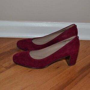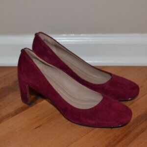 Donald Pliner Corin Plum Cranberry Square Toe Suede leather Block Heels, 9M
