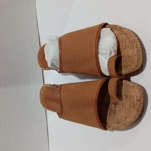 Donald Pliner Cork Wedge Heel, Ring Toe Leather Slide. size 91/2 M