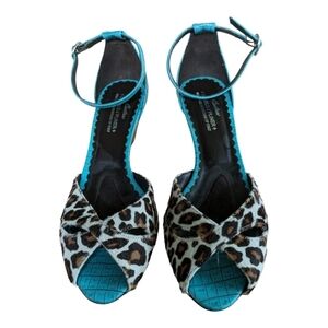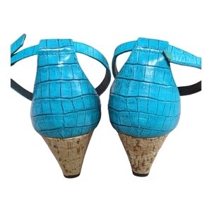 Donald Pliner Couture Calf Hair Croc Embossed 2.5" Wedge Ankle Strap Size 9N EUC