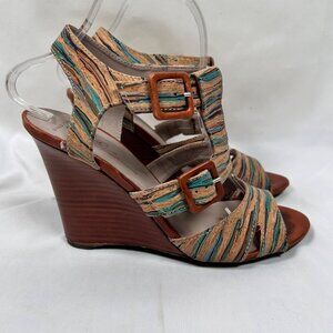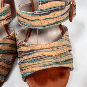 Donald Pliner Couture Hand Painted Cork Wedge Size 8.5 Sandal Shoe