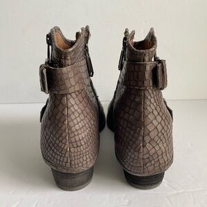 Donald J Pliner Dalis Ankle Booties Croc Embossed Taupe Gray Leather Boots Womens 8