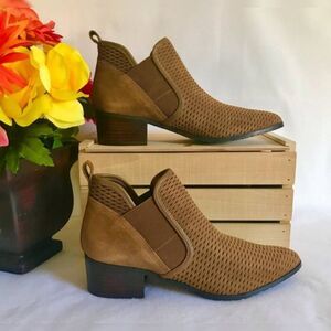 Donald Pliner Darla Brown Suede Perforated Western Chelsea Ankle Boots Booties 6