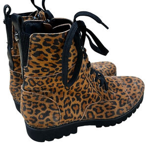 Donald Pliner EASE Natural Leopard Lace Up Side Zip Boot Women's Size 7M NWOB