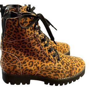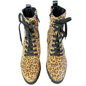 Donald Pliner Ease Leopard Print Suede Lace Up High Top Boots, NWOB Size 7
