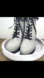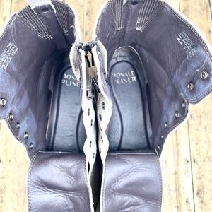 These stylish pre-owned Donald Pliner combat-style boots are in good condition. They have a full lace-up front, which can be left tied because of the side-zip opening for easy on and off.