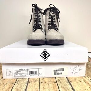 Donald Pliner “Ease” Suede Combat Boot in Light Taupe, Size 7.5 M