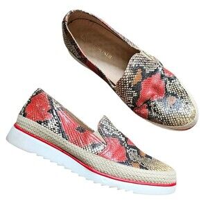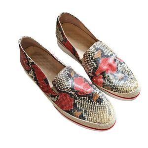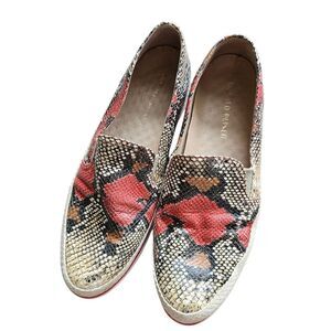 Donald Pliner Finni Red and Black Snakeskin Leather Flat Loafers Size 9.5