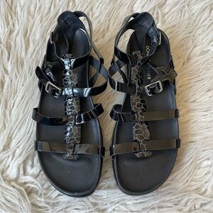 Donald Pliner Fritz Black Patent Leather Gladiator Platform Sandals EUC Size 6.5