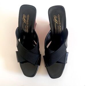 Donald Pliner Ishi Black/Red Patent Leather Elastic Strap Wedge Sandals 8.5M