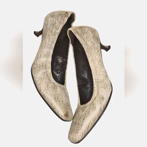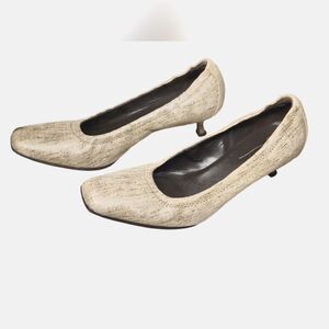 Donald Pliner Kitten Heel Square Toe Leather Metallic Gray Silver Old Money 8.5
