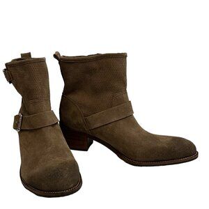 Donald Pliner Leather Suede Rugged Engineer Moto Buckle Strap Ankle Boots