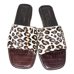 Donald Pliner Leopard Print Calf Hair Leather Slide Sandals Size 7
