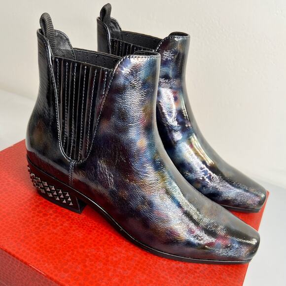 Donald Pliner Milann Black Patent Iridescent Studded Leather Ankle Booties W 7.5